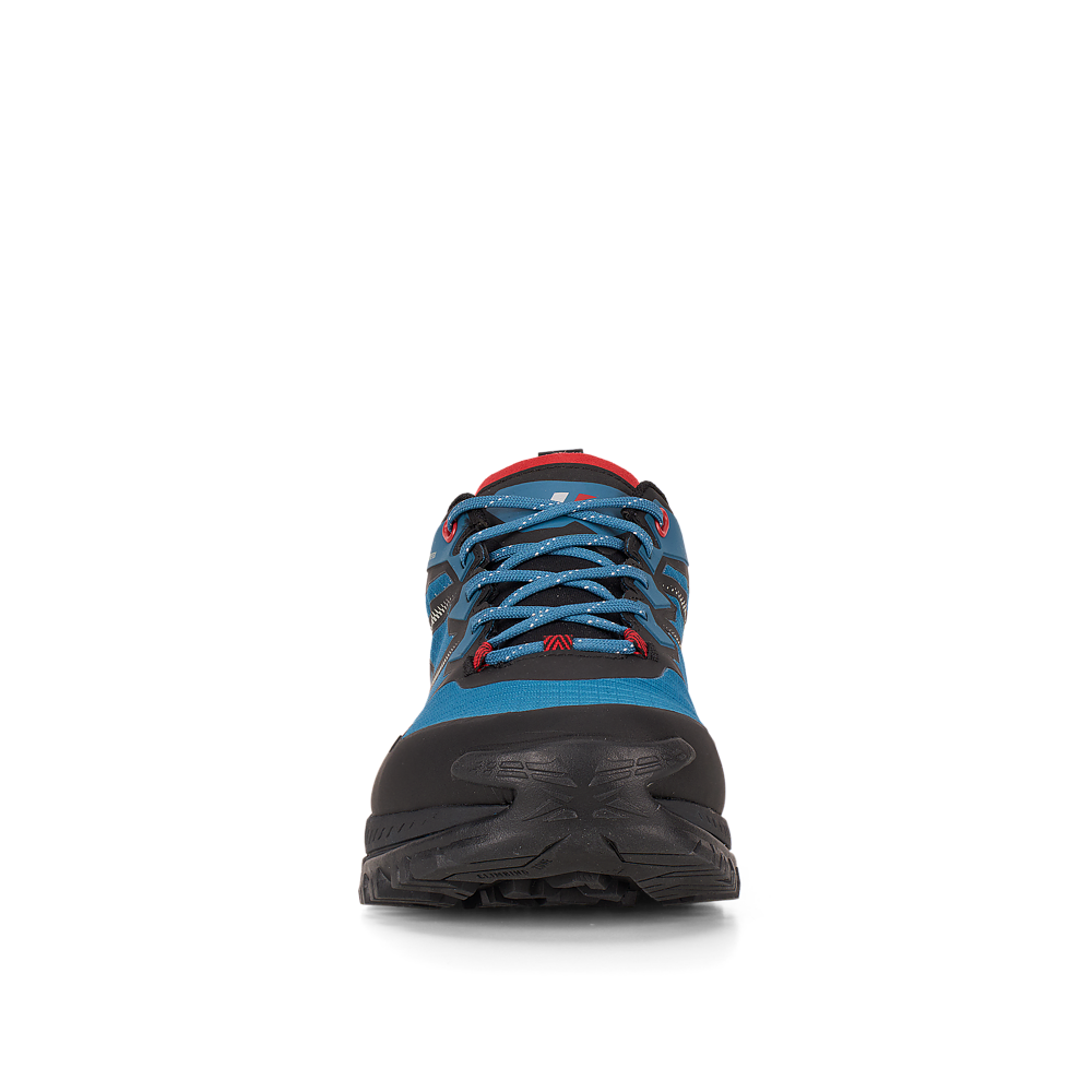 Внутри — мембрана PRISM 3LY, обеспечивающая надёжную водонепроницаемость и эффективный отвод влаги. Подошва Vibram® Duke с составом XS Trek EVO и технологией Traction Lug гарантирует уверенное сцепление на мокрых камнях, глине, траве и осыпях. Формованная межподошва из EVA обеспечивает лёгкую амортизацию и отдачу, сохраняя общую конструкцию удивительно лёгкой.