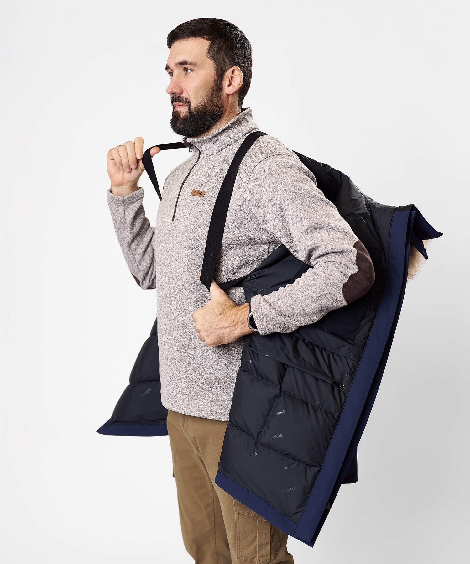 - Утеплитель: Утиный пух 90/10, F.P. 650+ — высококачественный натуральный пух с превосходным соотношением веса и тепла.