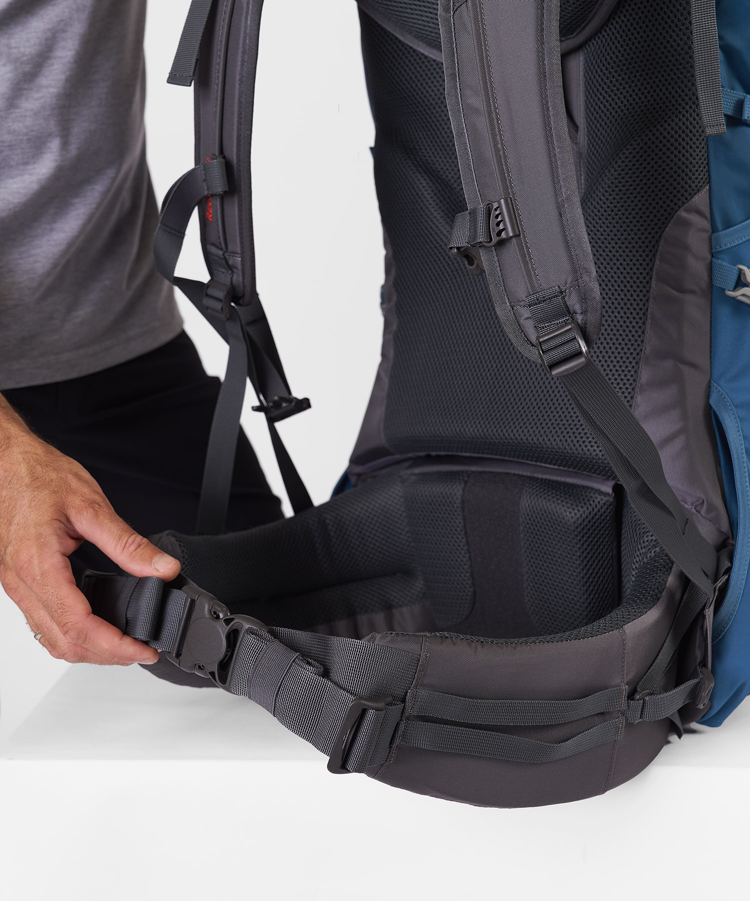 • Плавающий поясной ремень с нескользящими вставками в области поясницы позвоночника, с лёгкой затяжкой и боковой регулировкой