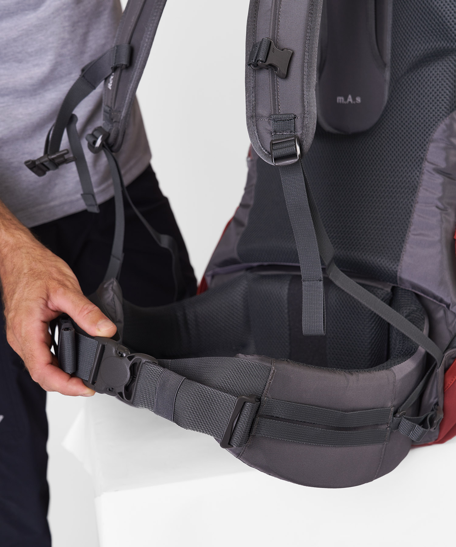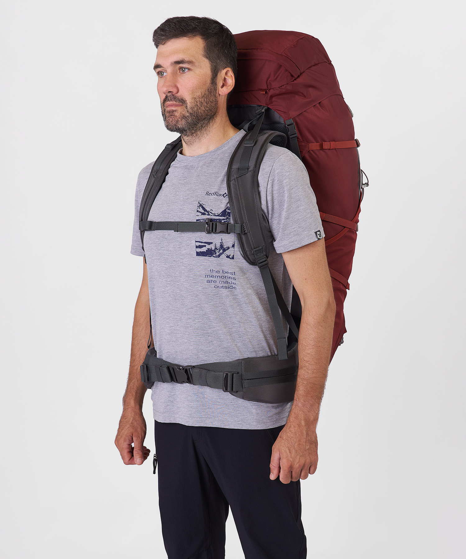 Рюкзаки изготовлены из технологичного материала – Nylon Oxford HD, объединяющего в себе ряд функциональных преимуществ. Он лёгкий и при этом очень прочный. Высокая плотность переплетения нейлоновых нитей обеспечивает устойчивость к истиранию и механическим воздействиям. Снаружи материал обработан водоотталкивающим составом; изнутри нанесено полиуретановое покрытие, препятствующее намоканию ткани. Материал устойчив к загрязнениям и не требует специального ухода. Инновационная подвесная система m.A.s используется в треккинговых и экспедиционных рюкзаках Red Fox. Cистема позволяет плавно регулировать высоту S-образных плечевых лямок. В зависимости от длины спины можно выбрать оптимальное положение плечевых лямок, чтобы равномерно распределить нагрузку при переносе тяжёлого снаряжения.