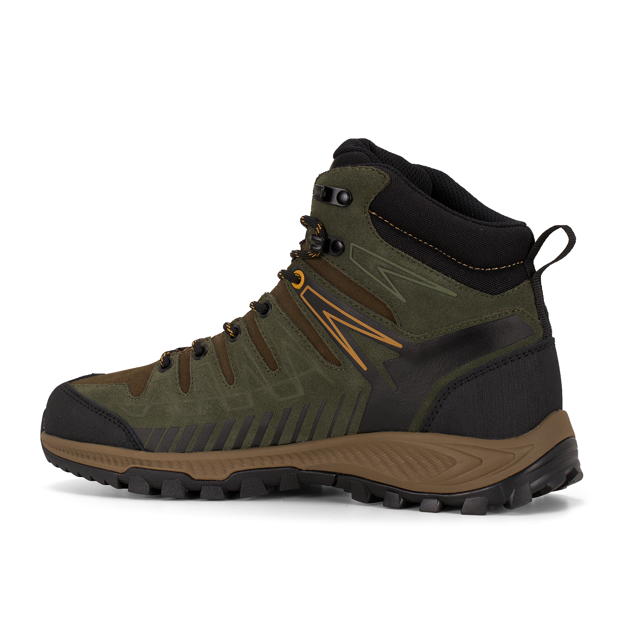 Средняя высота ботинка и мягкий анатомический язычок обеспечивают плотную, но комфортную посадку для любой формы стопы, а также надёжную поддержку голеностопа на пересечённой местности. Система шнуровки с люверсами и металлическими крючками гарантирует прочную и долговечную фиксацию — ботинок остаётся стабильным даже при интенсивных нагрузках. Мысок и пятка дополнительно усилены износостойкой полиуретановой мембраной, которая защищает от ударов и значительно продлевает срок службы обуви.