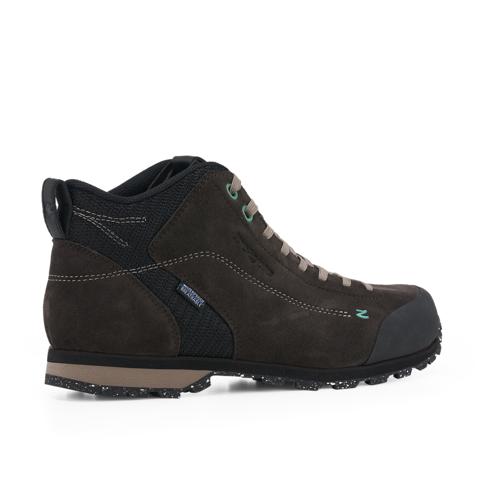 Верх выполнен из водостойкой замши — прочной, элегантной и защищающей от непогоды. Боковые вставки из дышащей сетки в сочетании с мембраной Trezeta® Water Stopper обеспечивают надёжную водонепроницаемость и эффективный отвод влаги, сохраняя ноги сухими даже в дождливую погоду.