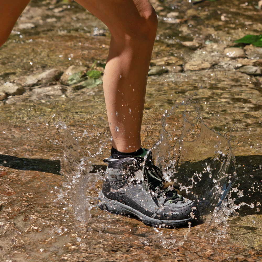 Мягкий верх из водонепроницаемой замши и технической ткани плотно, но свободно облегает стопу, не стесняя движений. Внутри — дышащая сетчатая подкладка и мембрана Trezeta® Water Stopper, которая надёжно блокирует проникновение влаги, снега и ветра, сохраняя при этом отличную воздухопроницаемость. Ноги остаются сухими и комфортными в любых условиях.