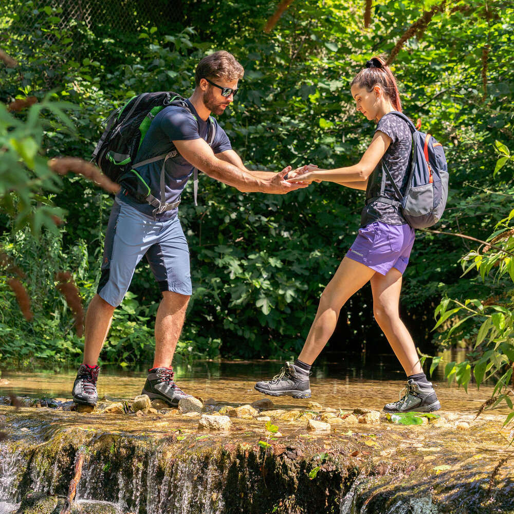 Межподошва из литого двухплотностного EVA эффективно гасит ударные нагрузки, снижает вибрацию и обеспечивает плавность ходьбы. А подошва Vibram® Multiland с увеличенной контактной зоной в передней части и многоуровневыми грунтозацепами гарантирует превосходное сцепление на мокром камне, укатанной земле, корнях и асфальте.