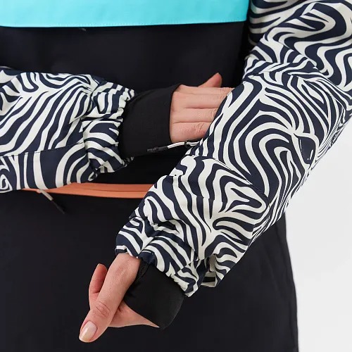 Влагозащитные молнии и трикотажные манжеты в рукавах исключают попадание снега и влаги внутрь