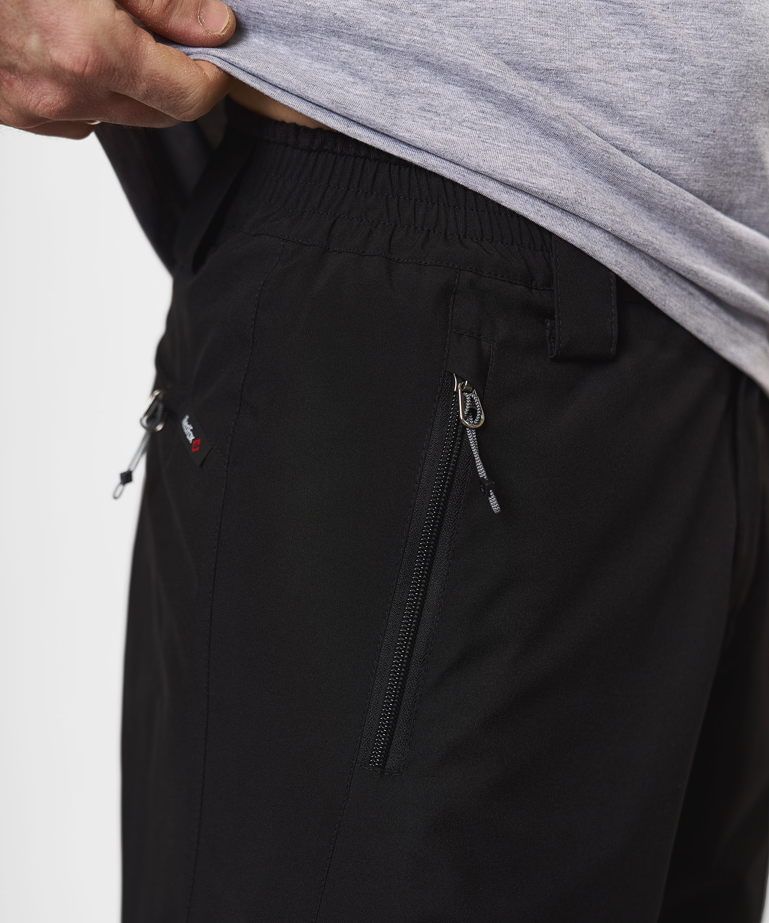 • Эластичный пояс с петлями для ремня — удобная и надёжная посадка