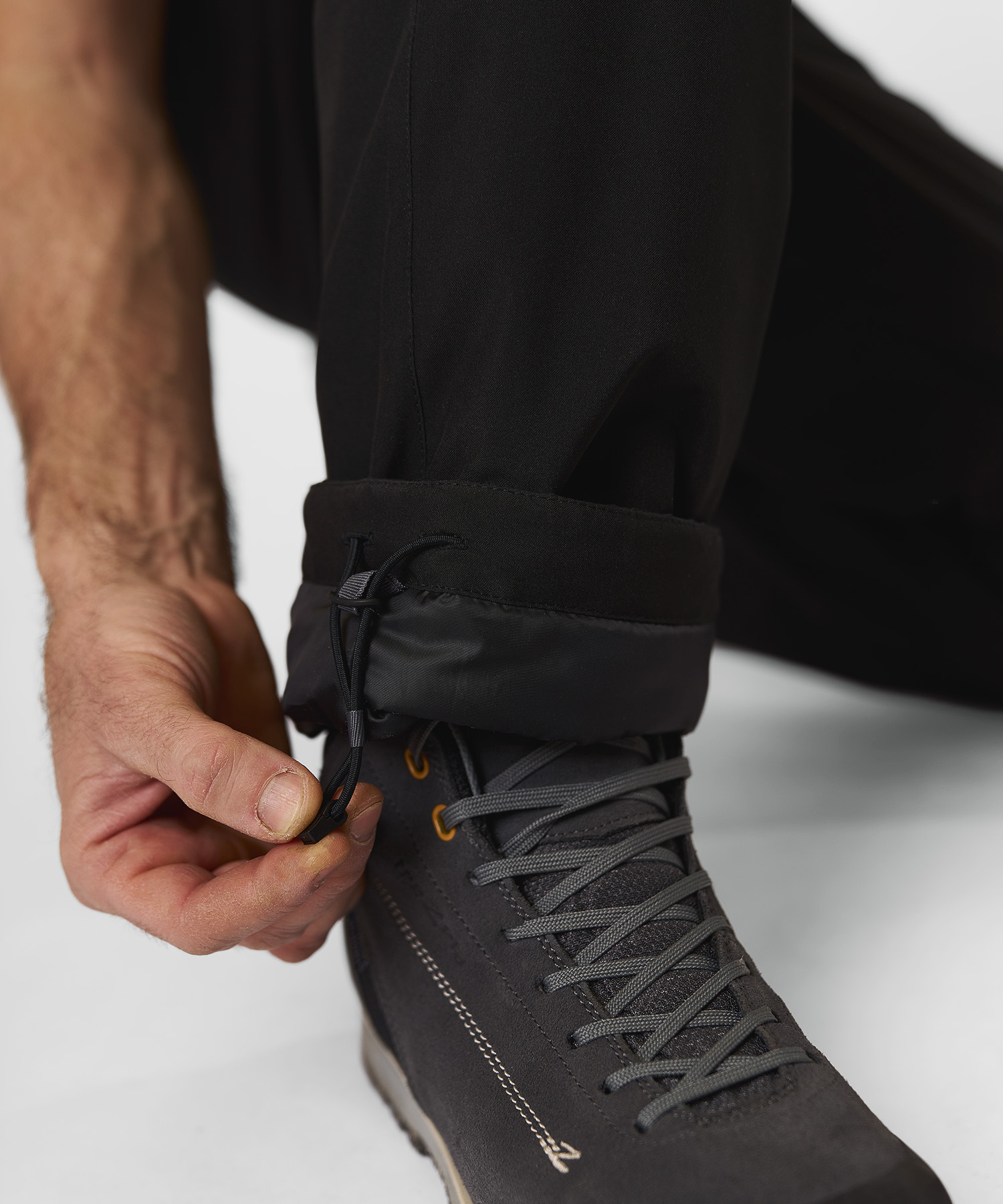 • Регулировка объёма по нижнему краю — плотное прилегание к обуви, защита от холода и снега