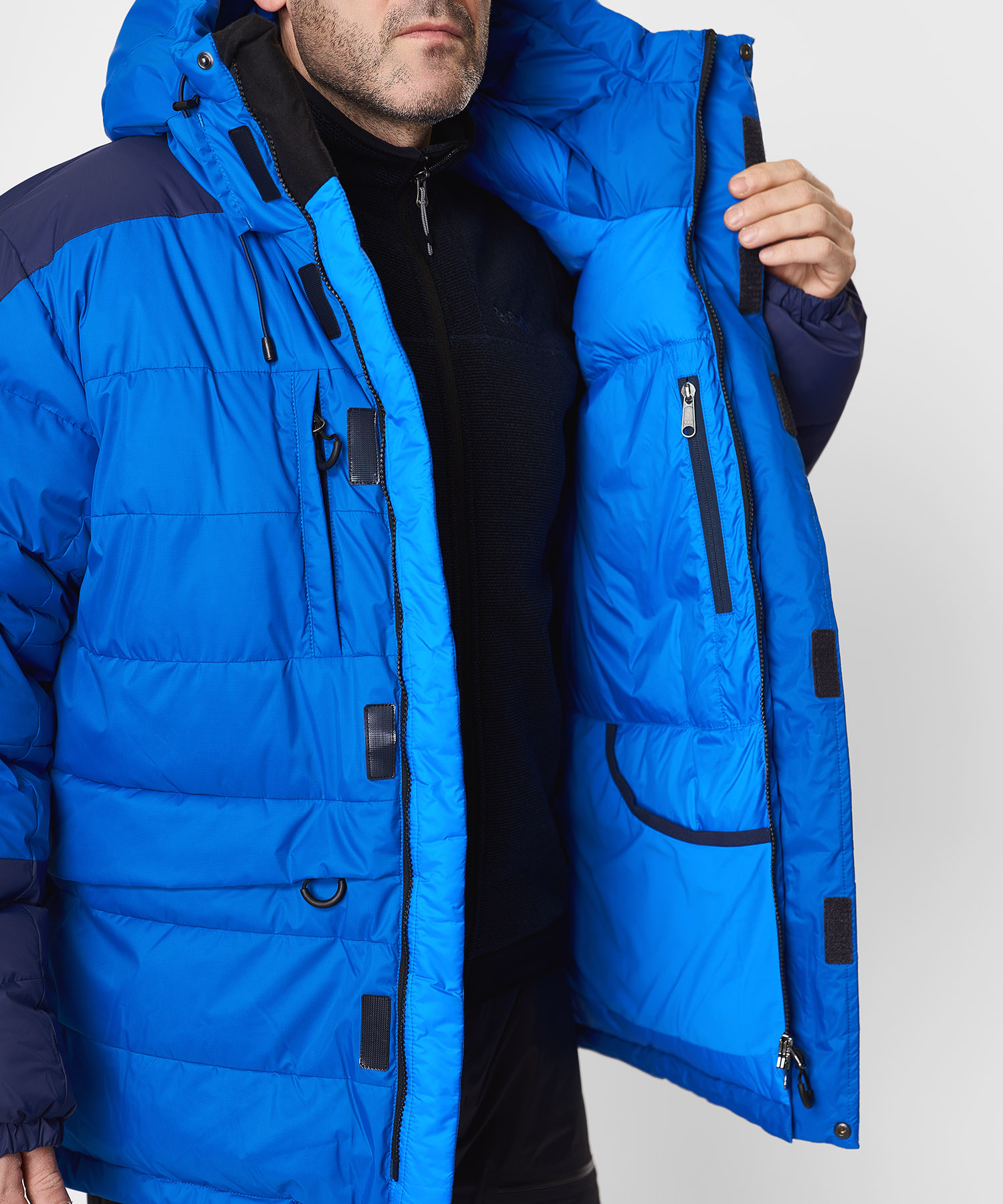 • Утеплитель: гусиный пух 90/10 с пуховым индексом 750+ — максимальная теплоэффективность при минимальном весе.