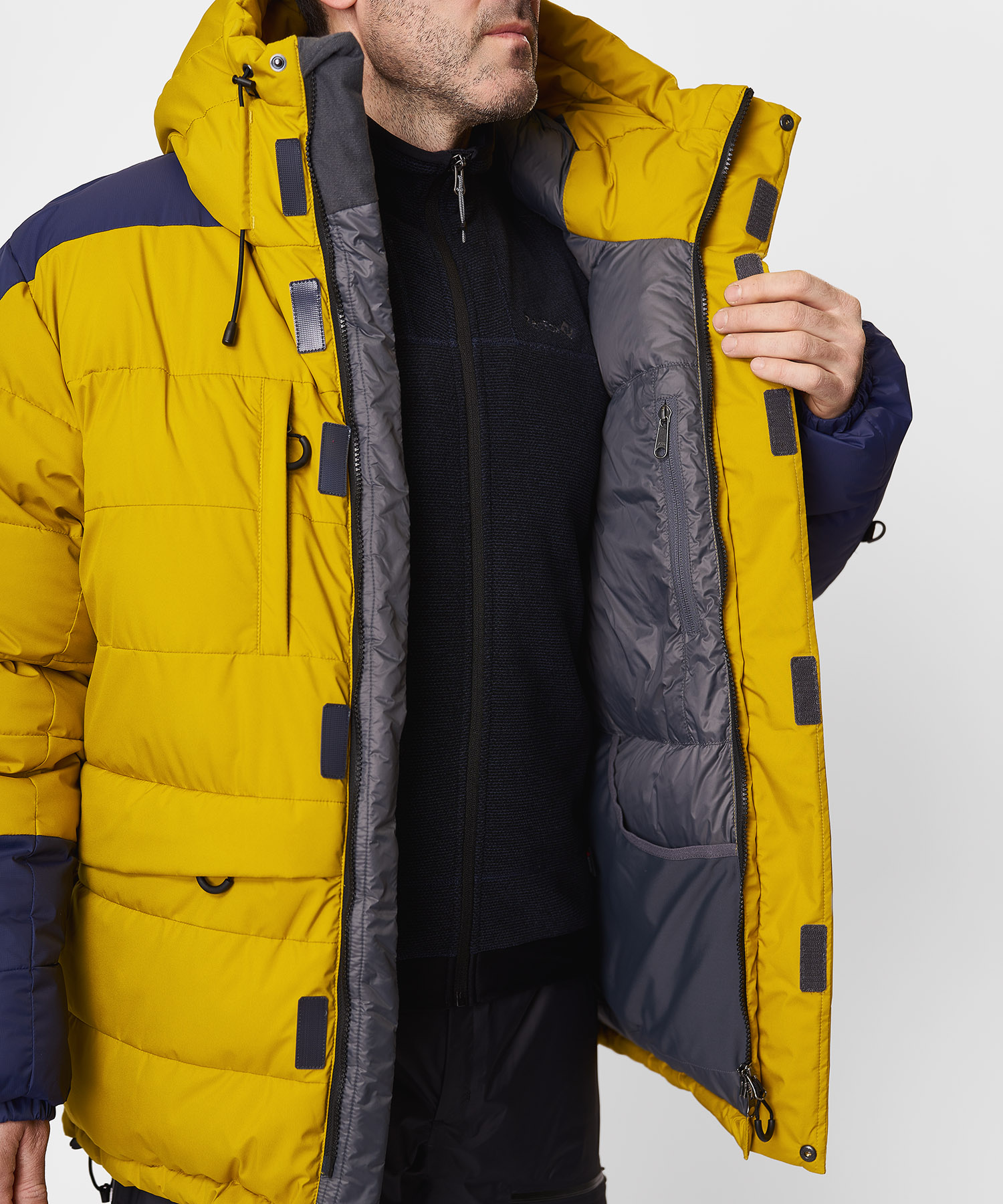 • Утеплитель: гусиный пух 90/10 с пуховым индексом 750+ — максимальная теплоэффективность при минимальном весе.