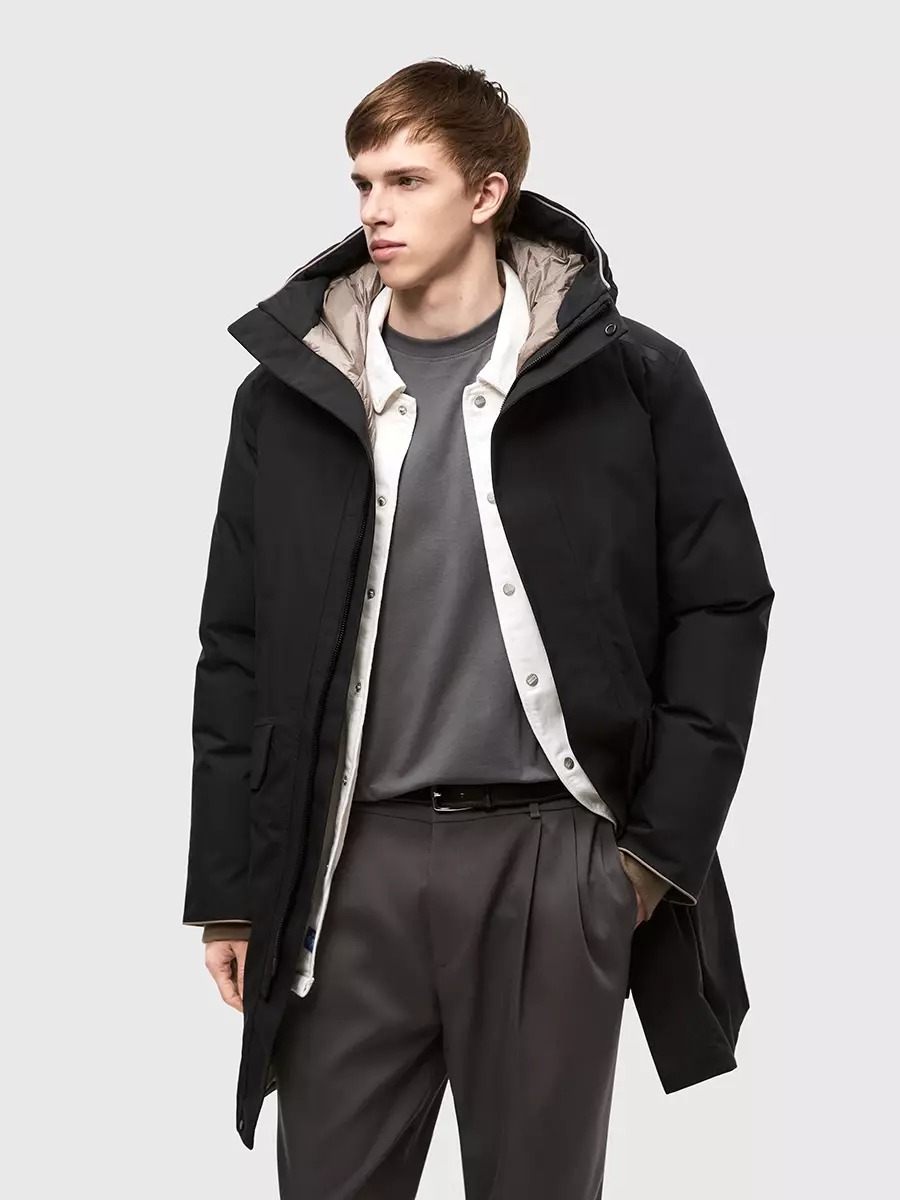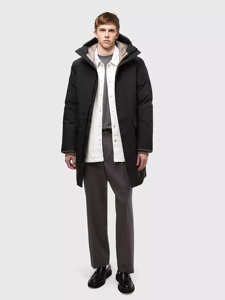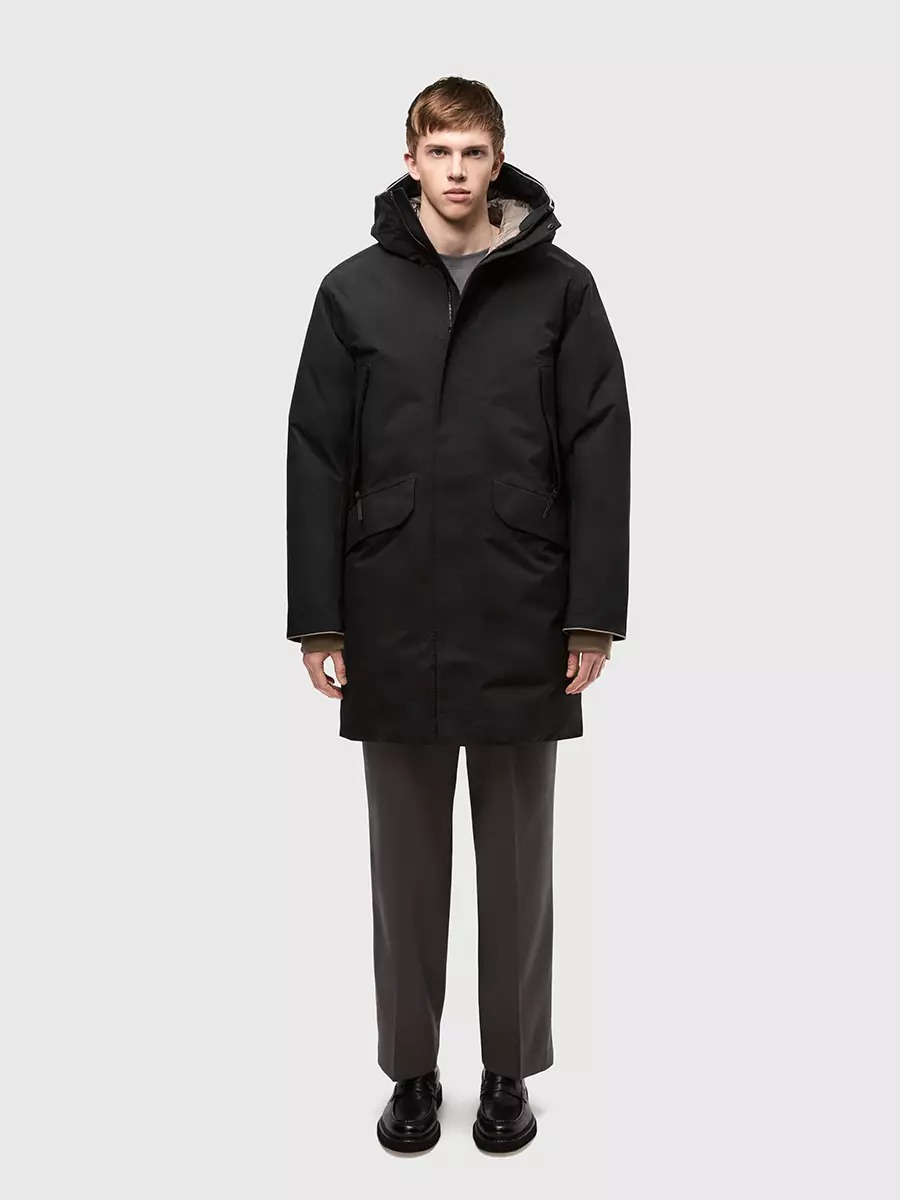 Ветреный снежный день – лучший повод отправиться на улицу в непродуваемом пальто Togar. Парка защищает не только от непогоды, но и от электромагнитного излучения, а ее подкладка обладает антибактериальными свойствами благодаря инновационному волокну Graphen.