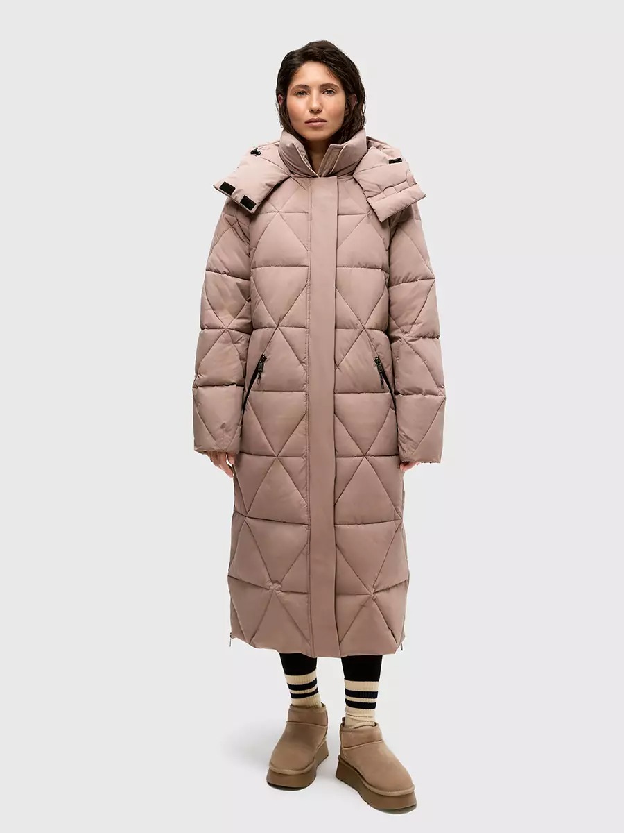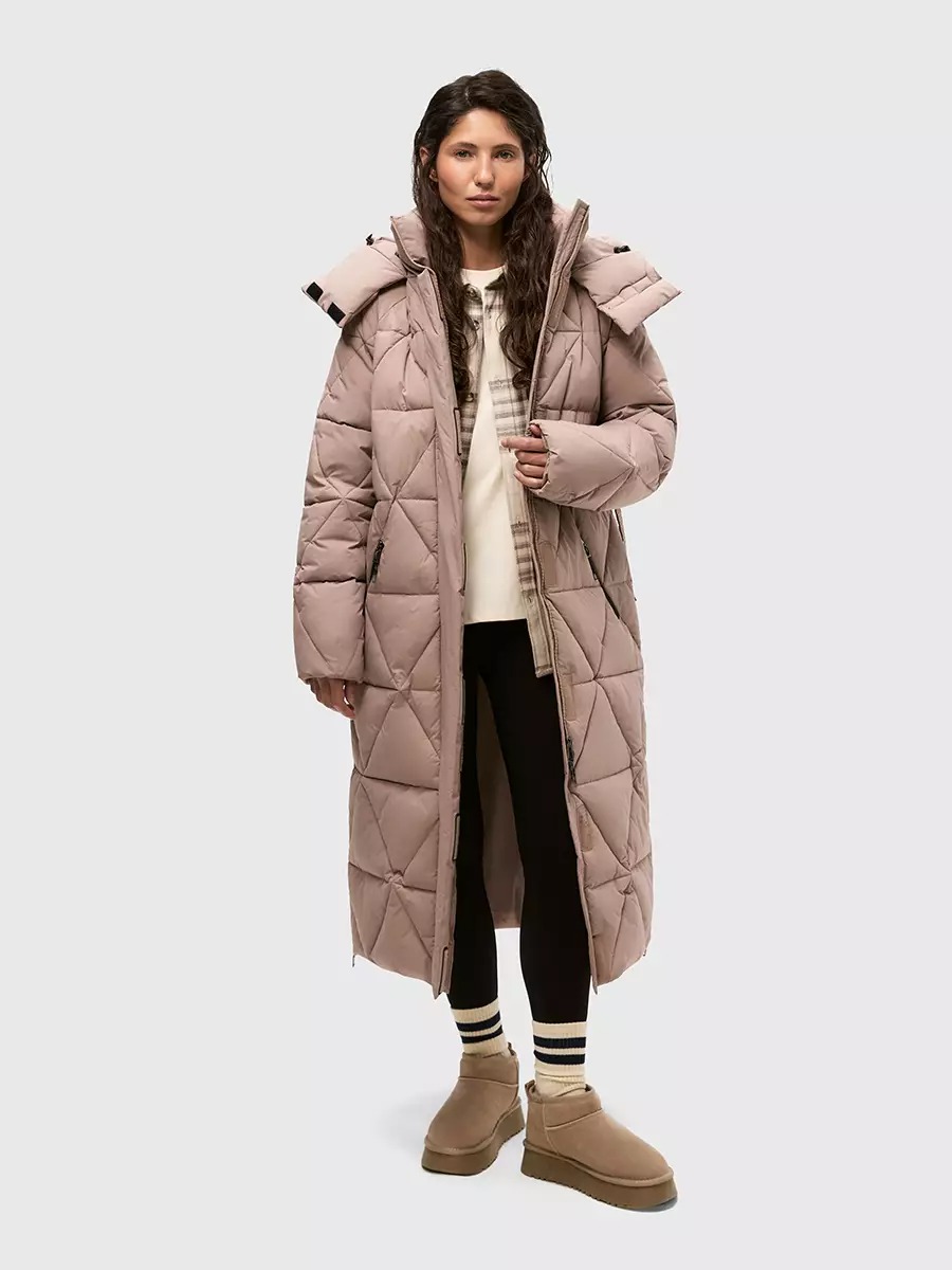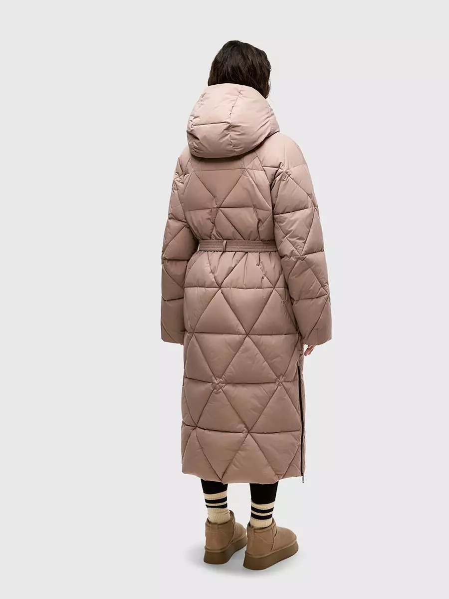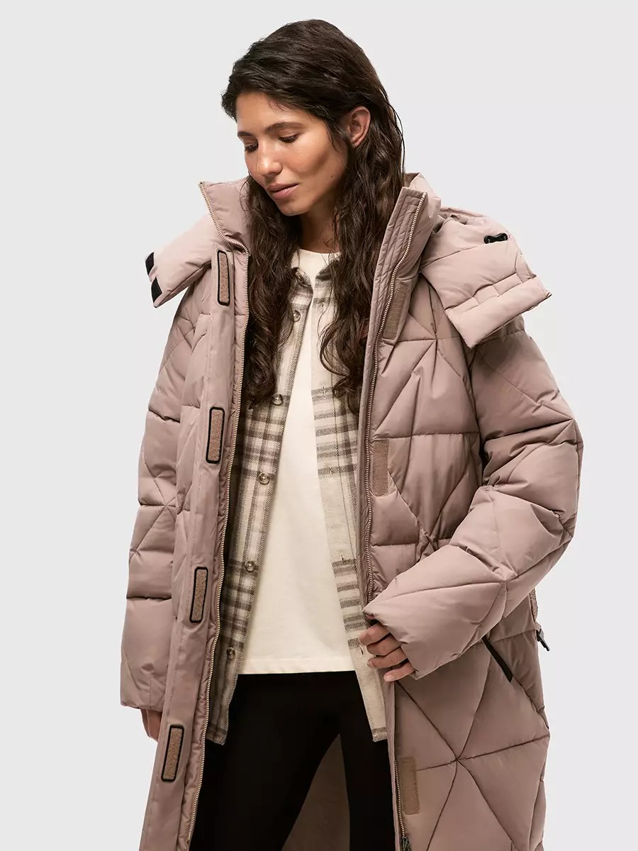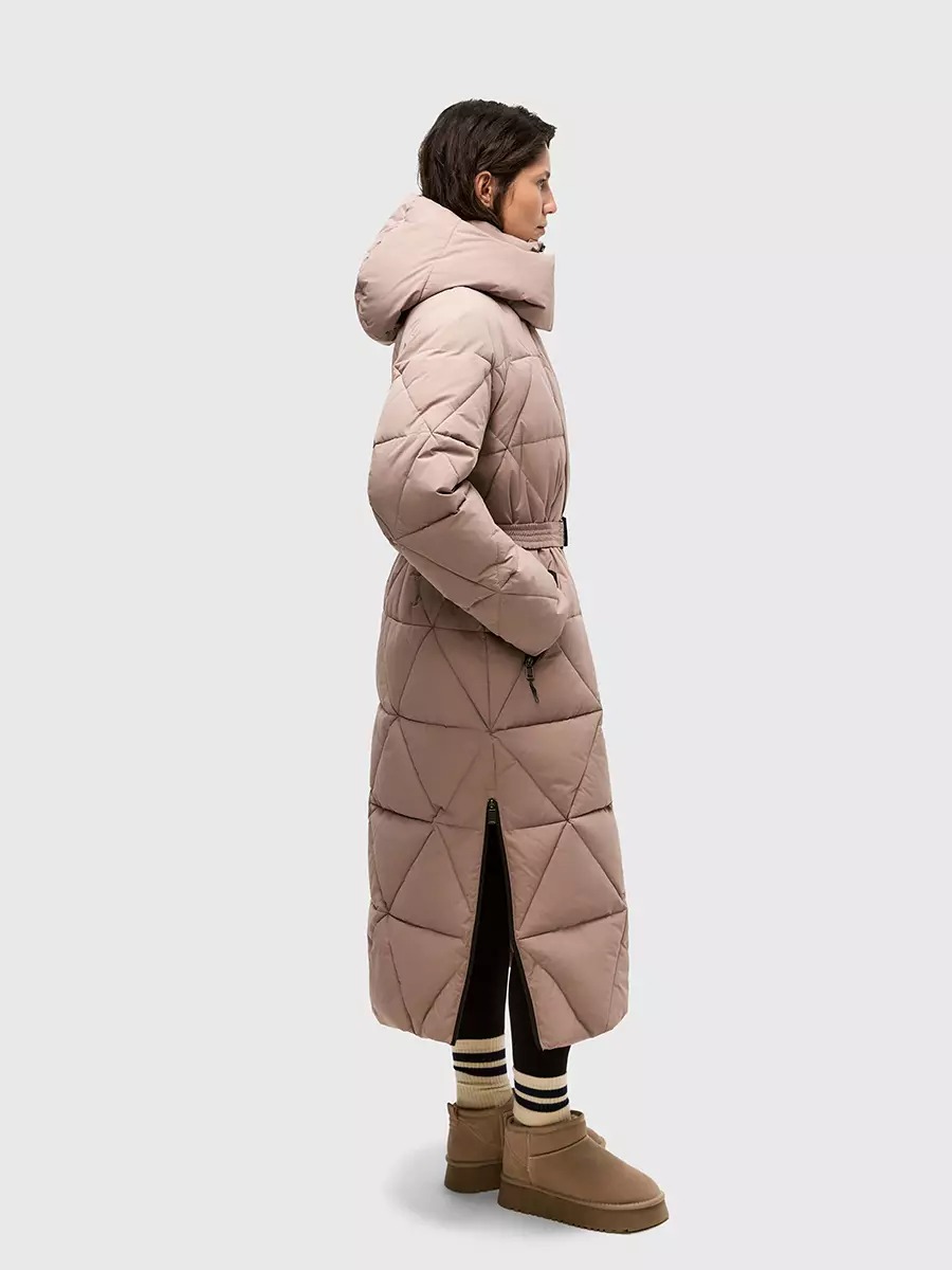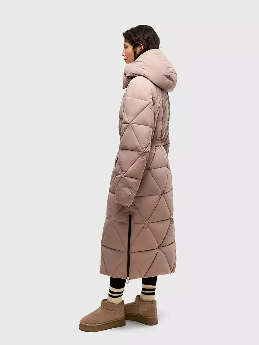 Одна из жемчужин коллекции - зимнее пальто ASHKAVA на функциональном поясе с графичным рисунком стежки. Его дизайн вдохновлен самой природой: причудливым узором трещин на поверхности льда.