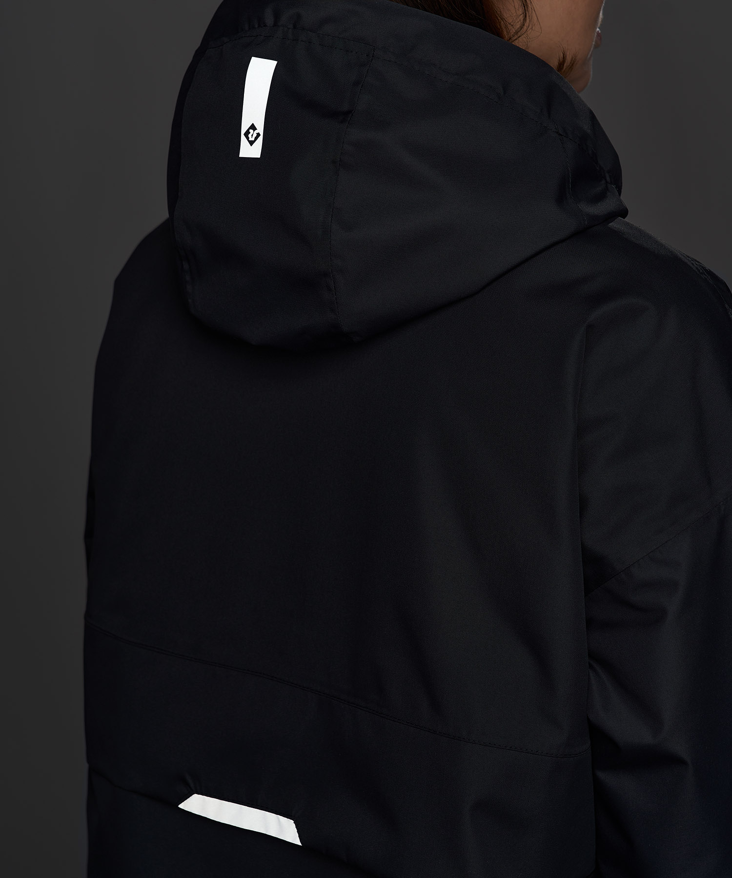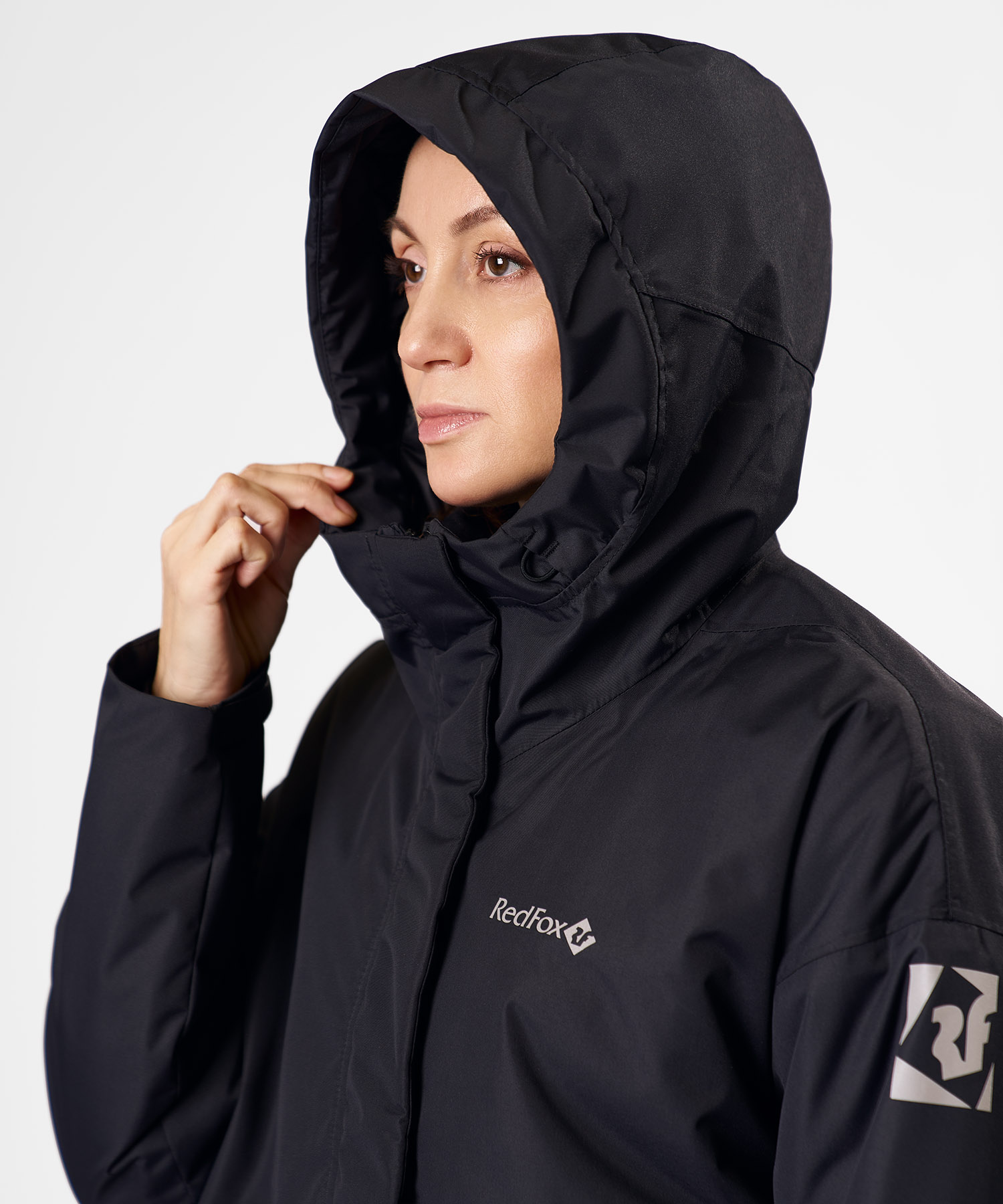 • Регулируемый по объёму интегрированный капюшон — всегда под рукой, легко настраивается под погоду
