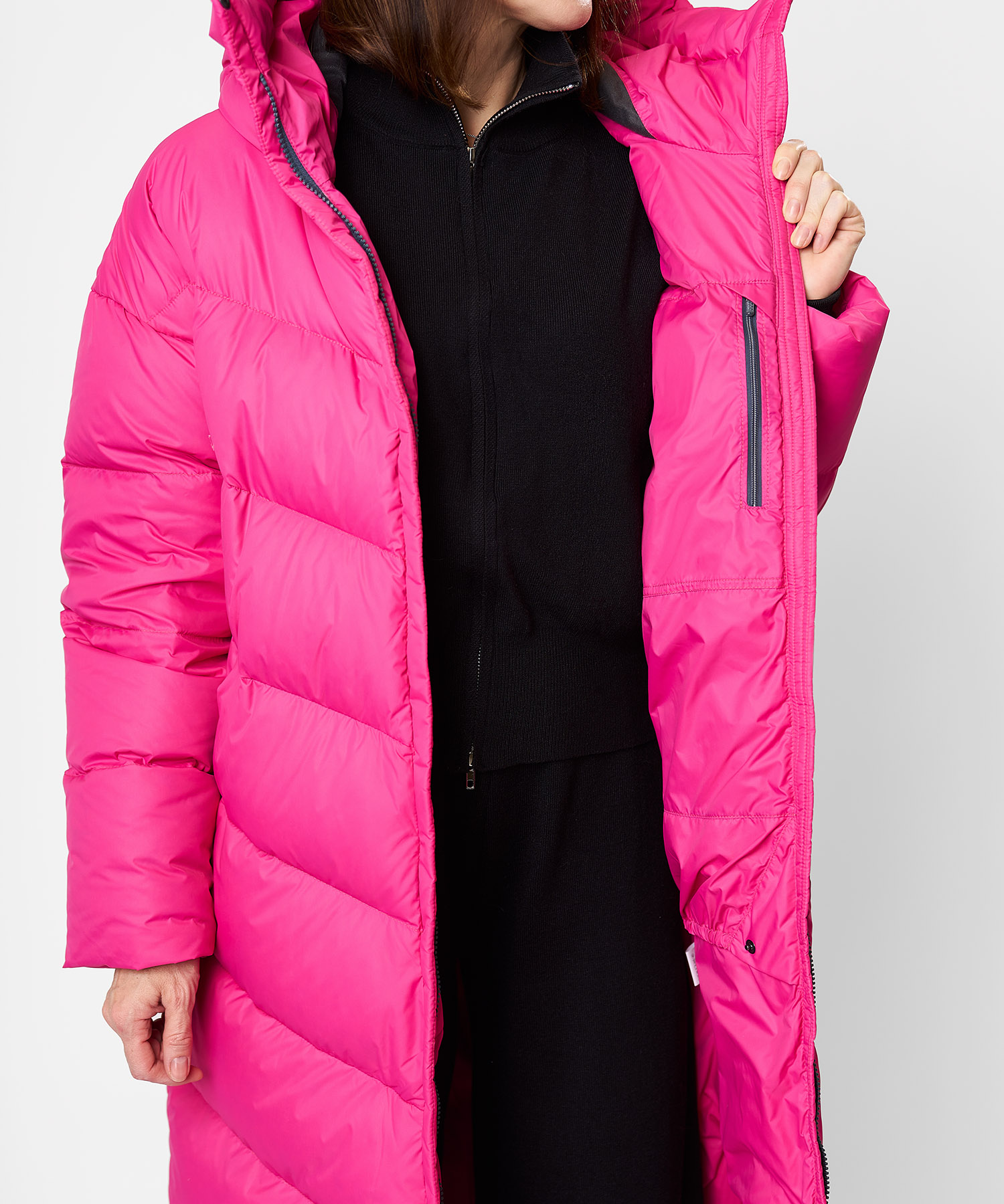 Элегантное и тёплое пальто для суровой городской зимы. Astra создано для повседневной жизни при температурах до -25°C — оно сочетает высококачественный пух, современный крой и продуманные детали, обеспечивая надёжную защиту от холода без ущерба для стиля. Длинный силуэт до середины икры не только выглядит утончённо, но и дополнительно защищает от ветра и снега.