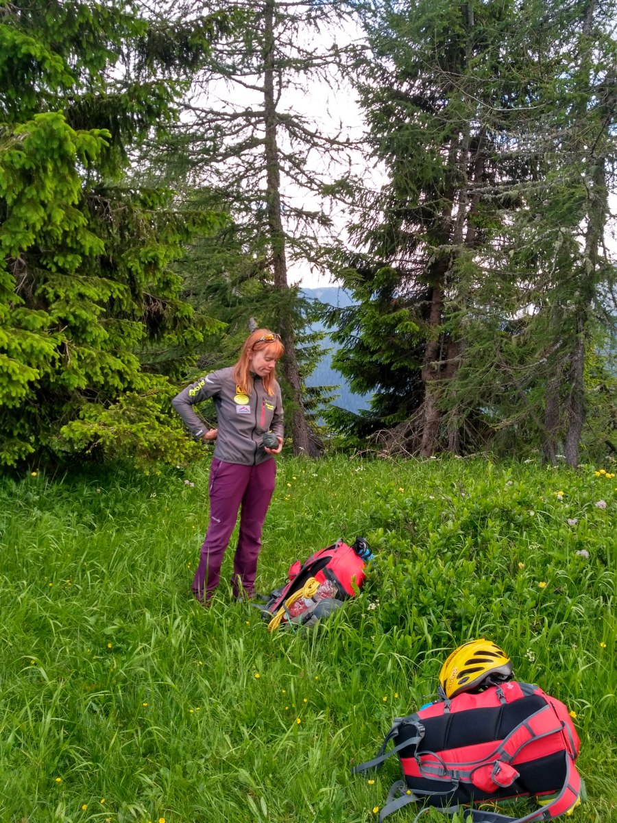 Помимо велосумок, закрепленных на багажниках велосипедов, нам требовались рюкзаки для совершения восхождений. Взяли новые рюкзаки Red Fox – A.C.P. 24 PRO. Сначала опасались, что объема 24 литра может не хватить. Ведь от места, где оставляли велосипеды, до самого маршрута надо было еще идти несколько часов и зачастую ночевать под маршрутом в горных хижинах или палатке, а значит, помимо снаряжения для восхождения приходилось нести бивуачные вещи и еду. Но этот вопрос решился просто – за счет дополнительного 20-литрового тонкого гермомешка Red Fox, который пристегивали к рюкзаку за грузовые петли обычными велосипедными стяжками.