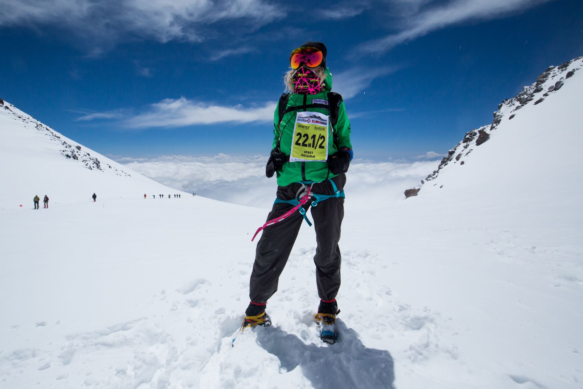 Я очень благодарна Вике Клименко, она высотный судья и обычно всех встречает на вершине Эльбруса. В день старта она заставила меня надеть тёплую термуху. На вершине дул сильный ветер, и пришлось ее закрыть. В таких случаях финиш переносят на «Седло» (5300 м).