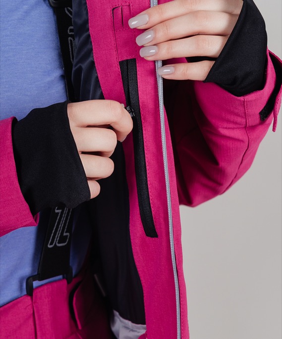 7 карманов позволяют разложить все необходимые на склоне вещи, в том числе ски-пасс, горнолыжную маску и телефон. Внутренний карман с выходом под наушники. В области подмышек предусмотрена дополнительная вентиляция. В области спины, с изнаночной стороны, влагоотводящая вставка.