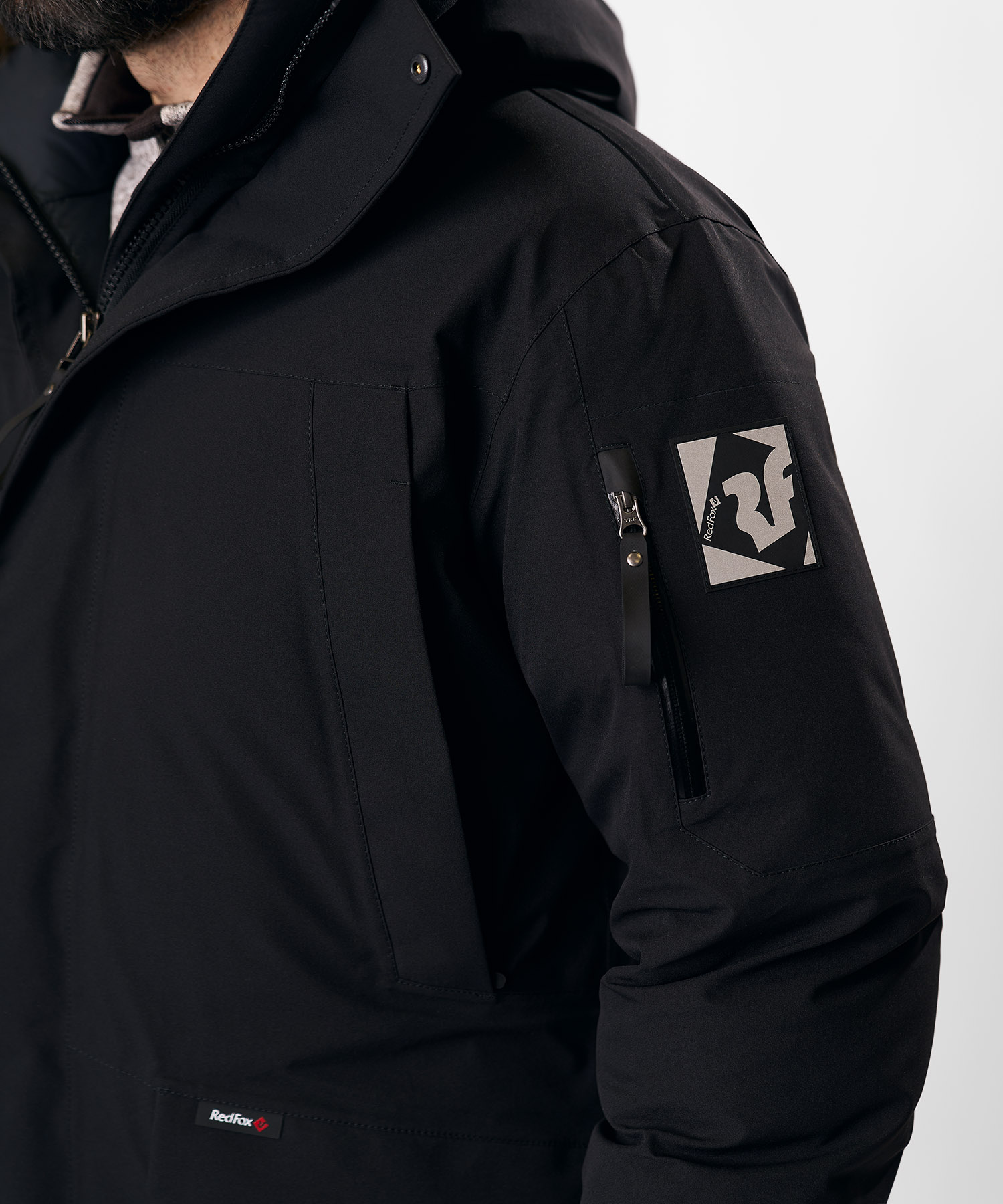- Карман с влагозащитной молнией на рукаве — быстрый доступ к телефону или пропуску