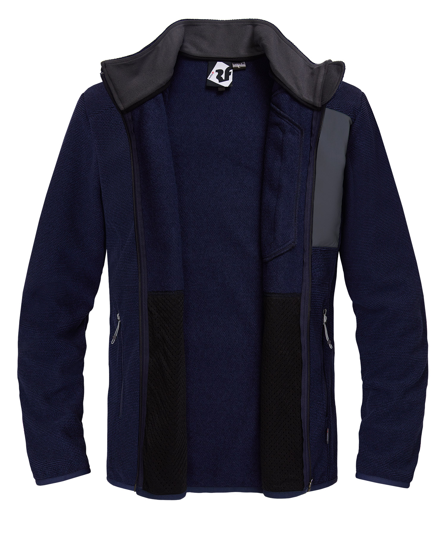 • Воротник-стойка с внутренней отделкой из мягкого микрофлиса — комфорт и защита шеи от ветра