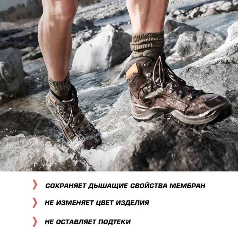 Незаменимое средство от негативных погодных условий (вода, снег, грязь), реагентов и соли. Специальный состав создает защитный слой и придает водоотталкивающие свойства. Для создания грязе- и водоотталкивающих свойств у новой одежды и обуви, сумок и рюкзаков без заводской пропитки. Для дополнительного усиления водоотталкивающего слоя одежды и аксессуаров, на которых уже есть защитный слой. Для восстановления водоотталкивающих свойств у изделий с пропитками от производителя, которые вымылись или стерлись в результате носки. Быстрая активация гидрофобного слоя: 15–20 минут от нанесения до готовности к использованию. Создает длительную защиту от воды и загрязнений. Сохраняет дышащие свойства материалов. Не влияет на цвет и текстуру. Виды материалов: натуральный текстиль, гладкая кожа, замша, нубук, синтетические и мембранные материалы.