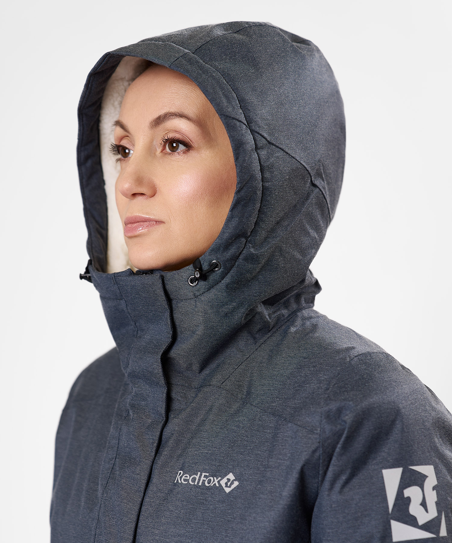 • Регулируемый по объёму капюшон — плотно облегает голову, защищает от ветра