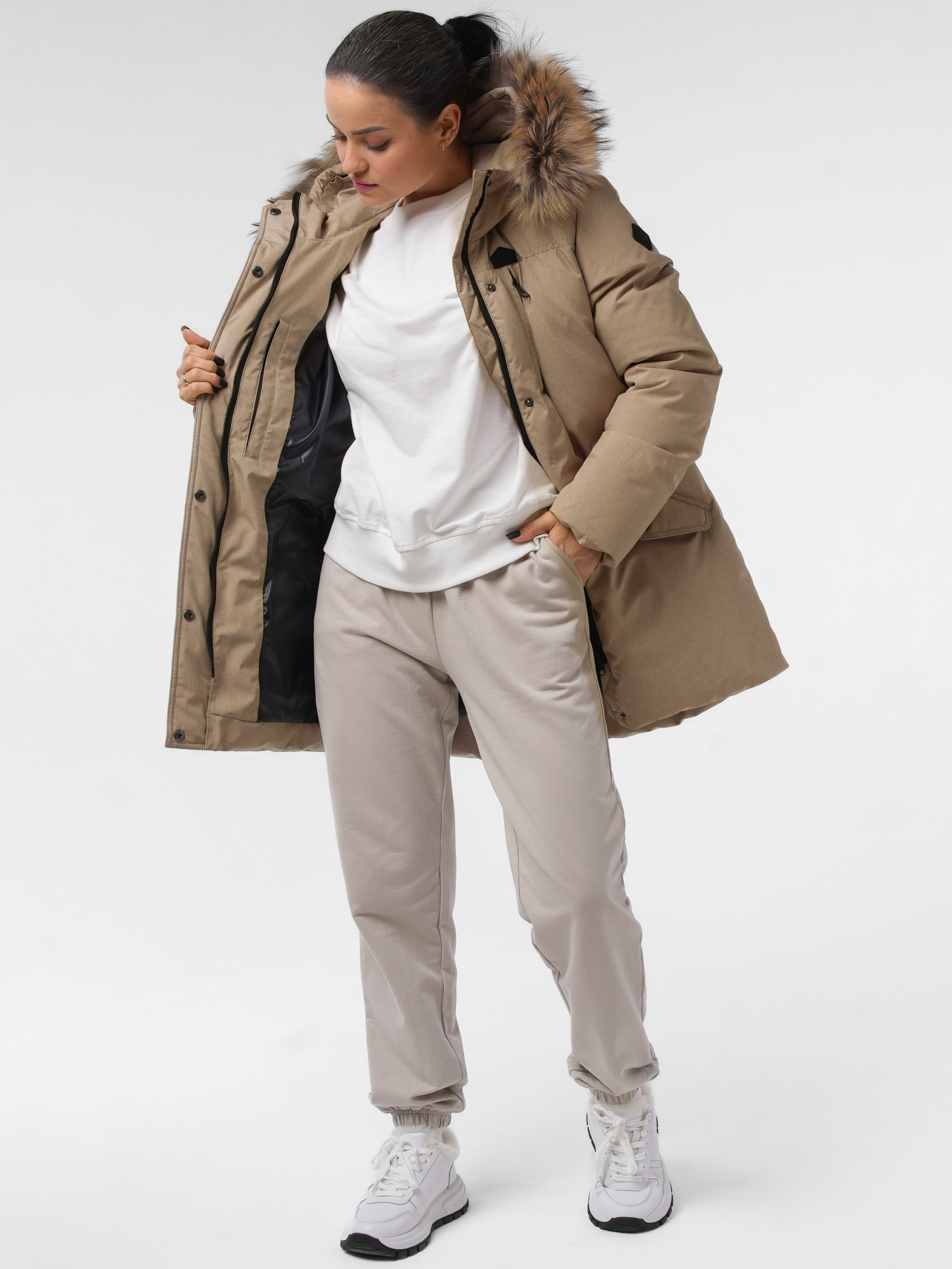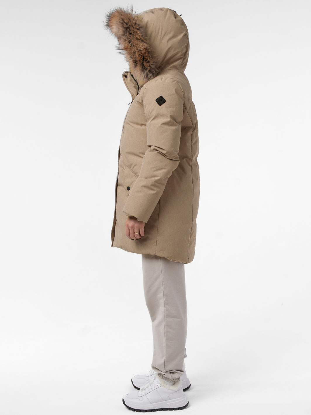 Капюшон: отделка капюшона- опушка из натурального не крашенного енота, которую при необходимости можно отстегнуть