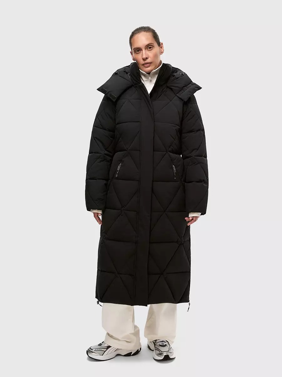 Одна из жемчужин коллекции - зимнее пальто ASHKAVA на функциональном поясе с графичным рисунком стежки. Его дизайн вдохновлен самой природой: причудливым узором трещин на поверхности льда.