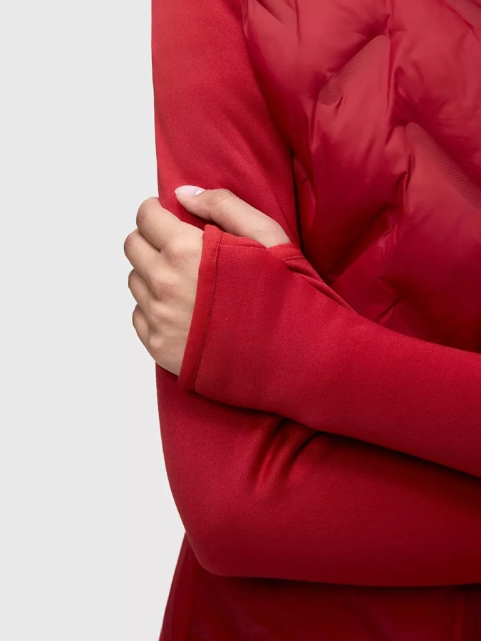Дополнительные элементы: нижняя часть рукава с отверстием для большого пальца, декоративное силиконовое лого на рукаве, внешняя деталь с кнопкой на спинке для подстегивания изделия к верхней куртке