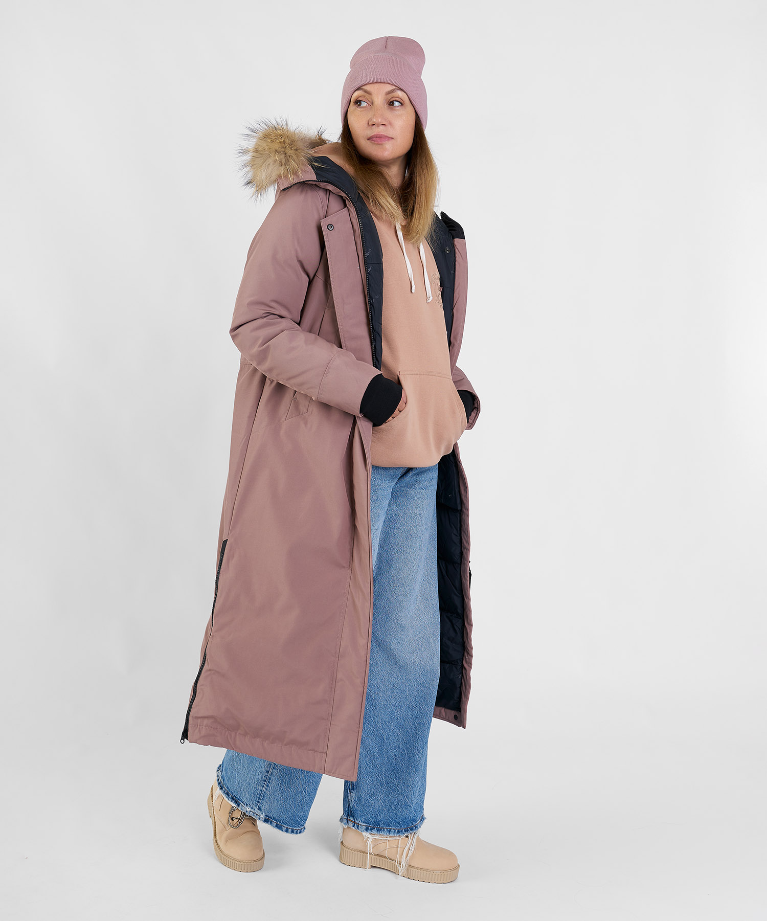 - съёмная опушка на кнопках (натуральный мех енота)
