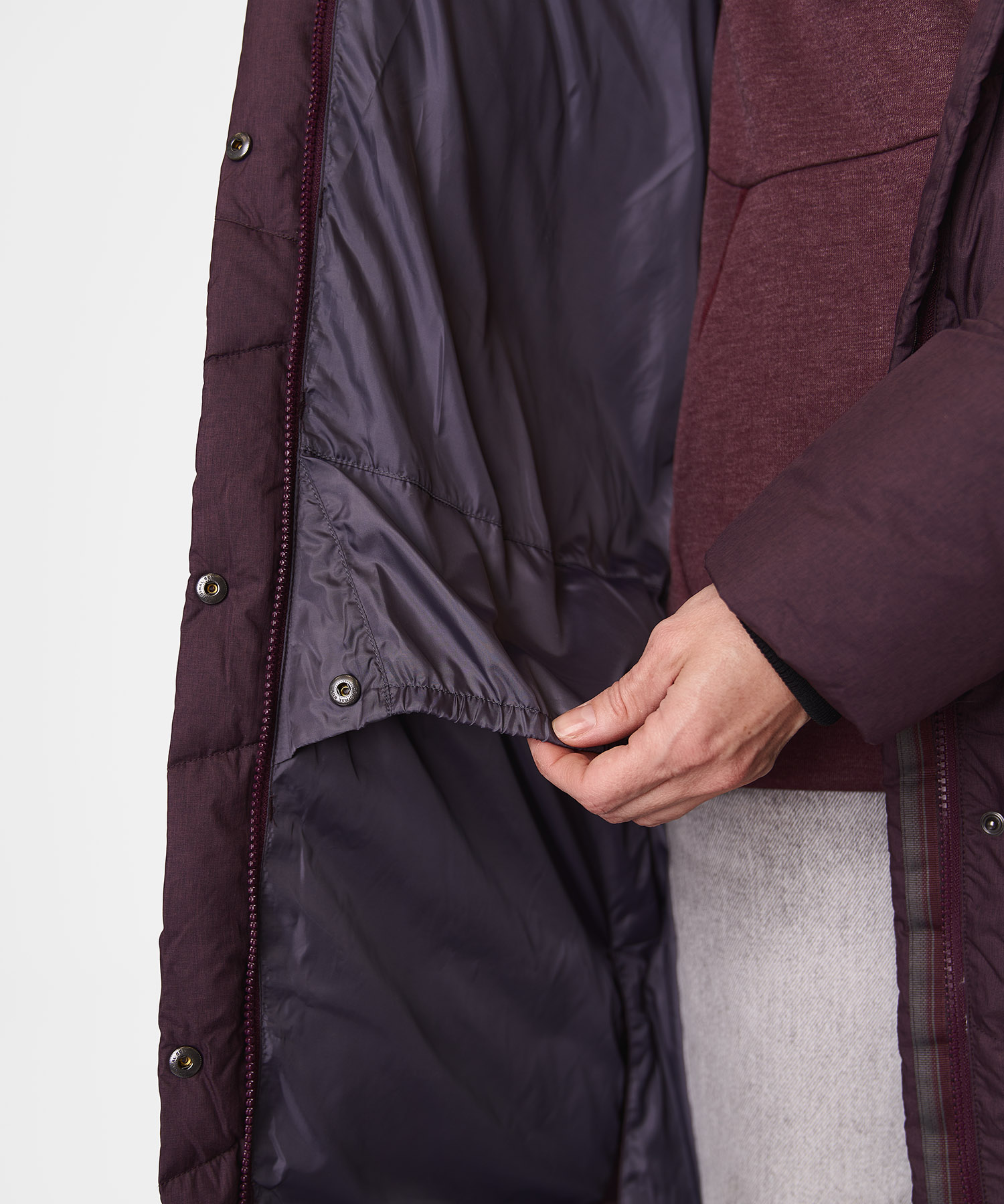 • Дополнительный утеплитель: синтетический слой в зоне плеч — предотвращает смещение пуха и усиливает защиту под сумкой или рюкзаком.