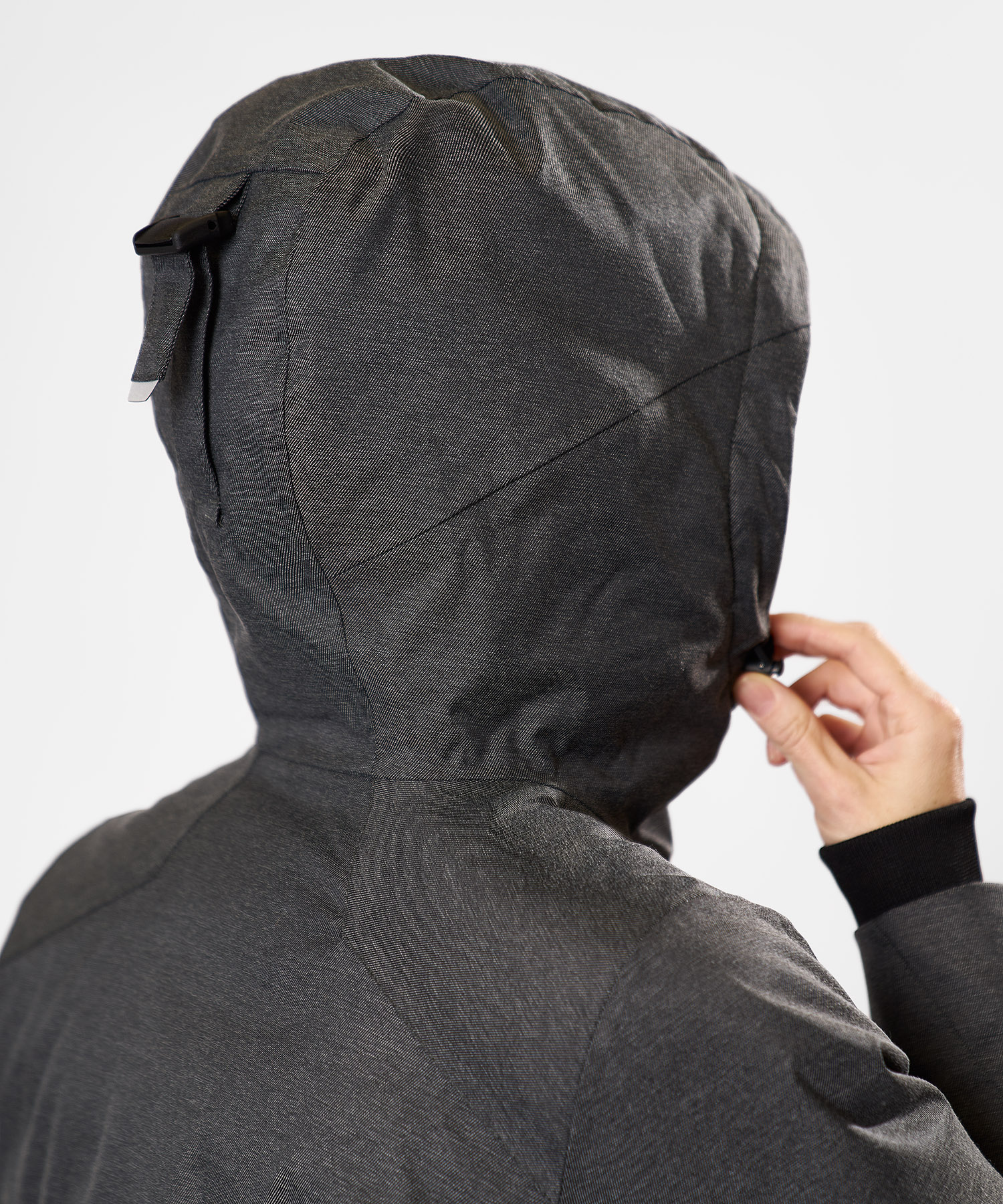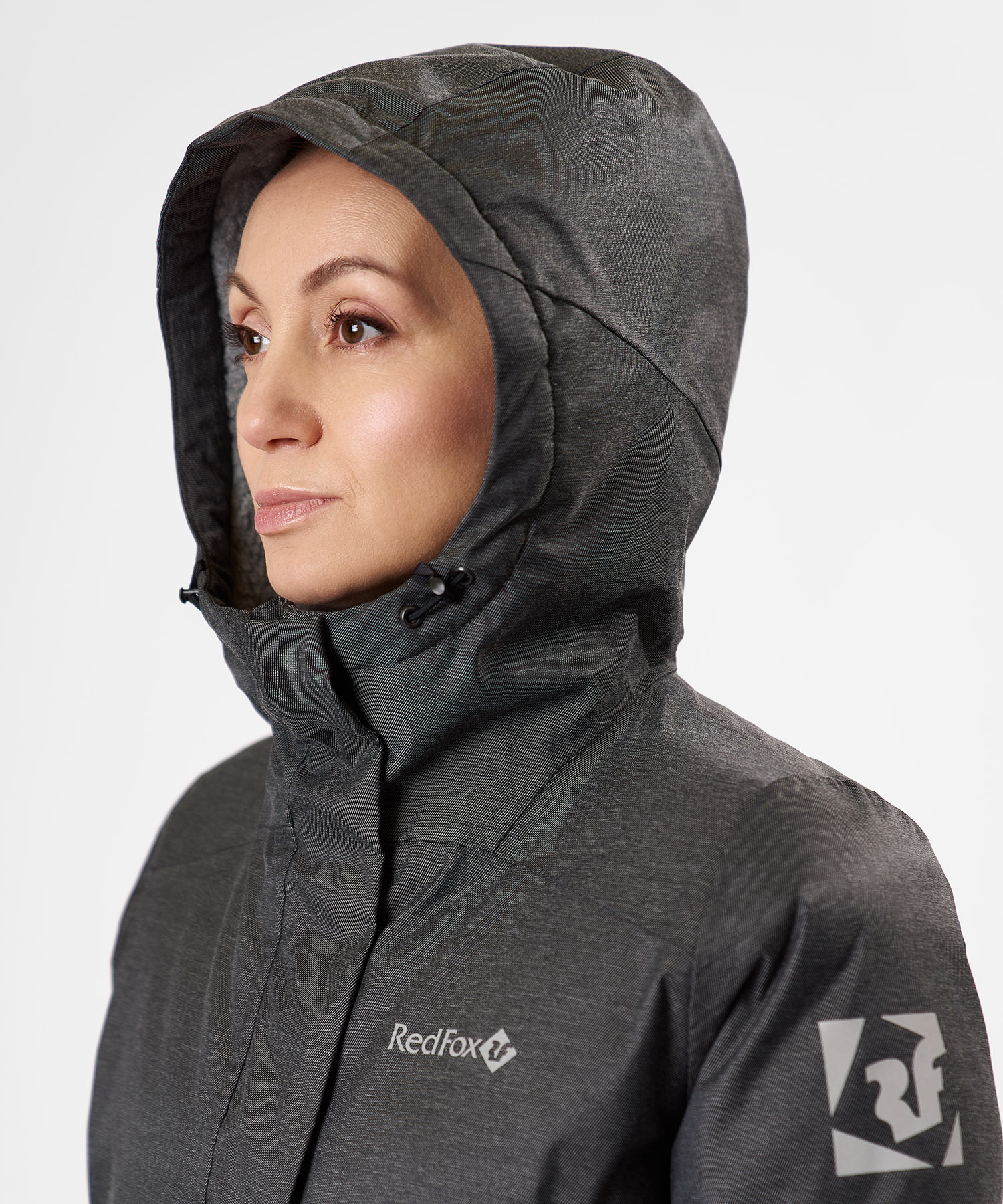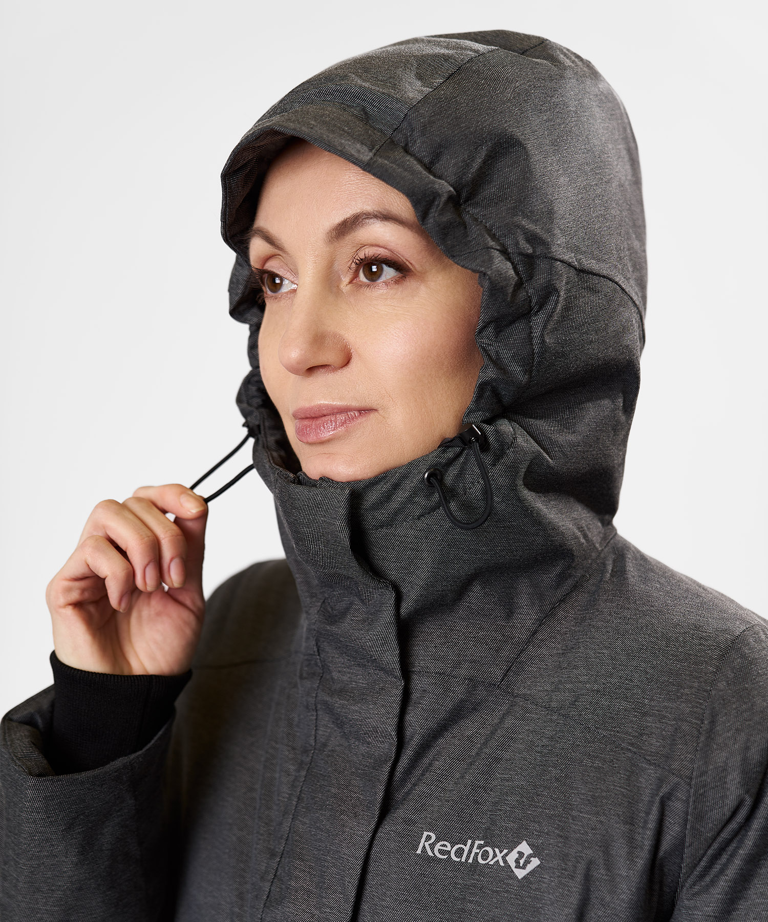 • Регулируемый по объёму капюшон — плотно облегает голову, защищает от ветра