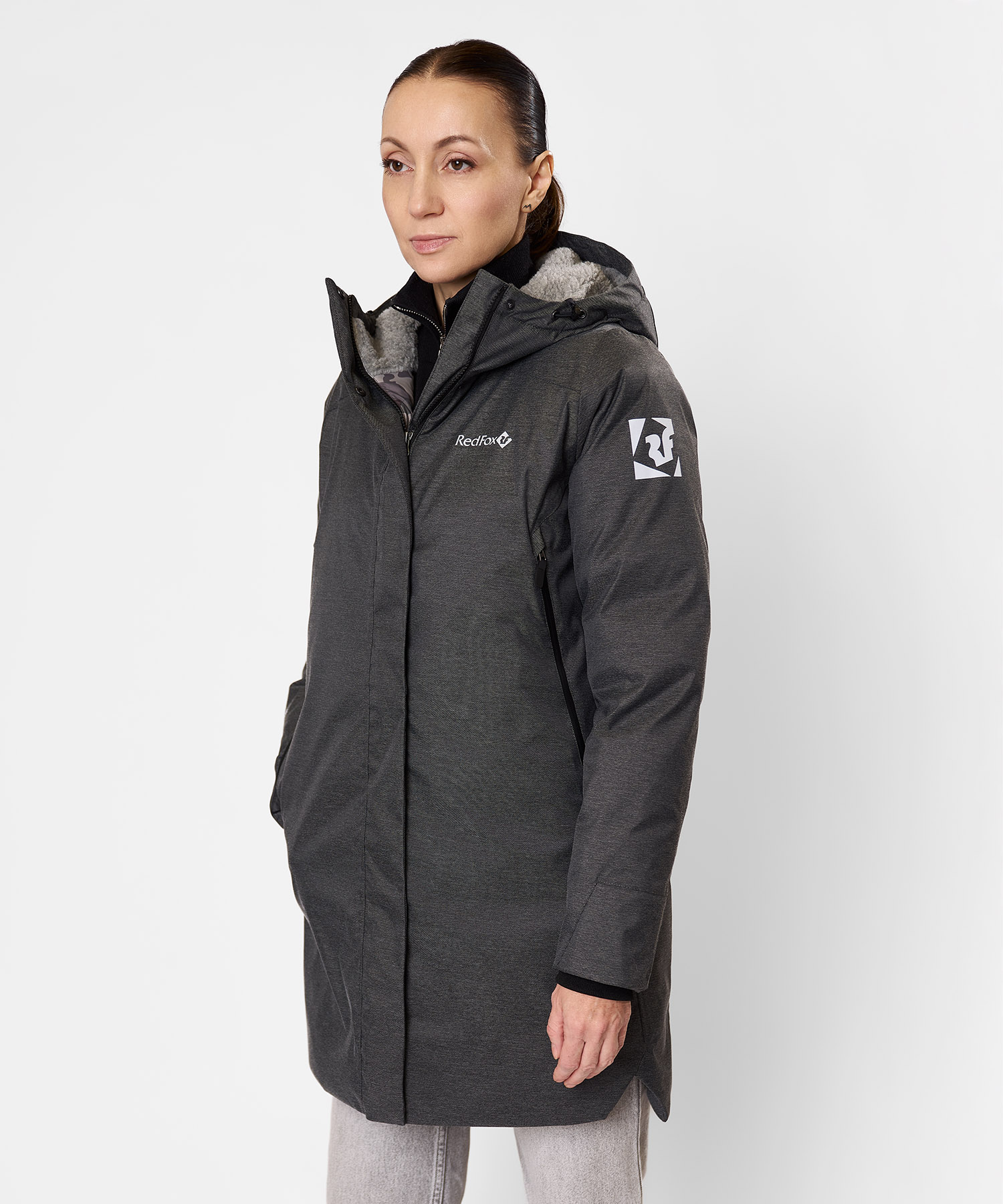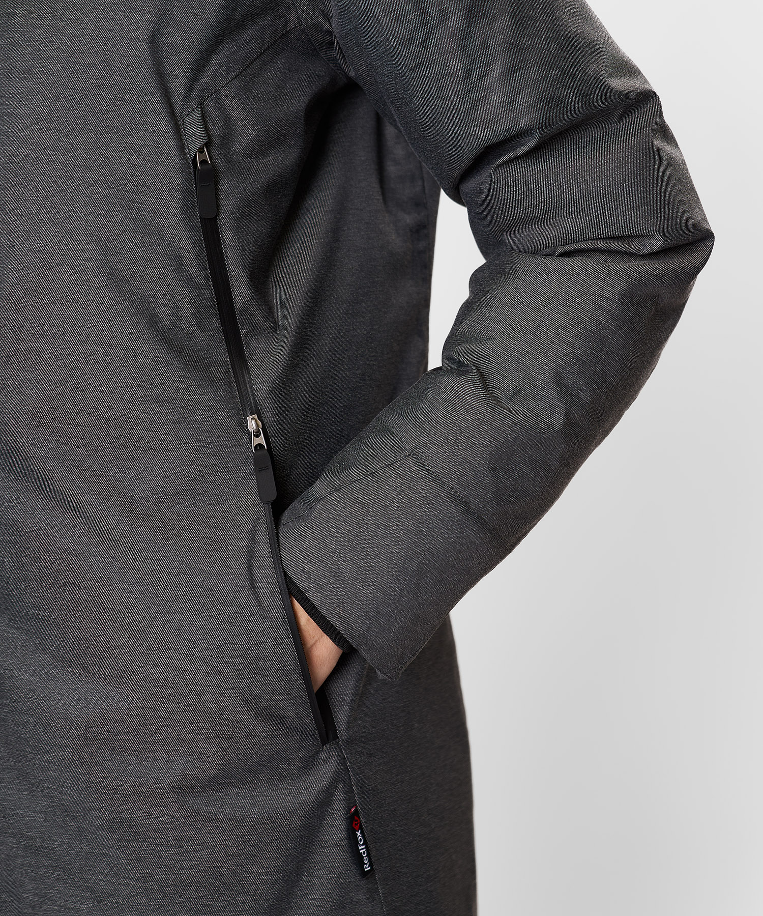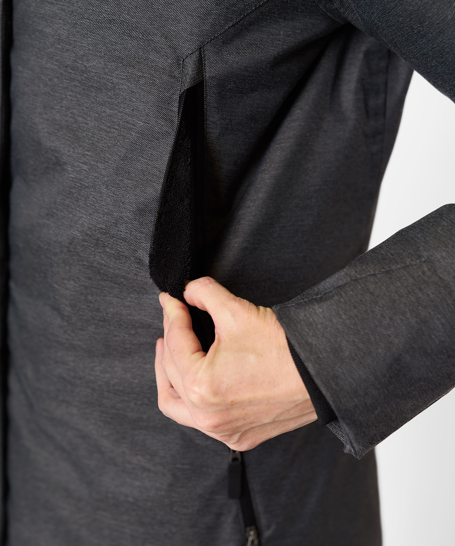 • Боковые карманы с мягкой флисовой подкладкой на влагозащитных молниях — тёплые, удобные, защищены от снега